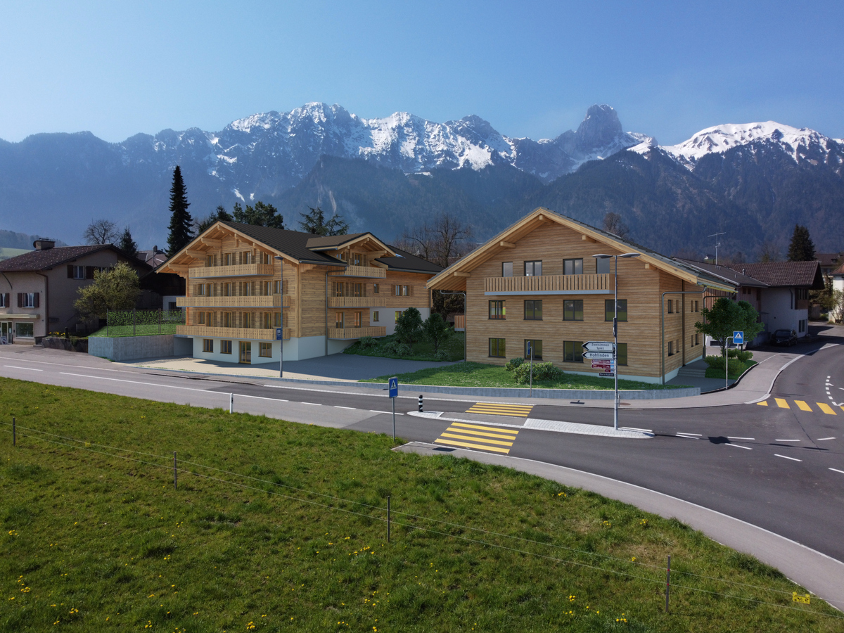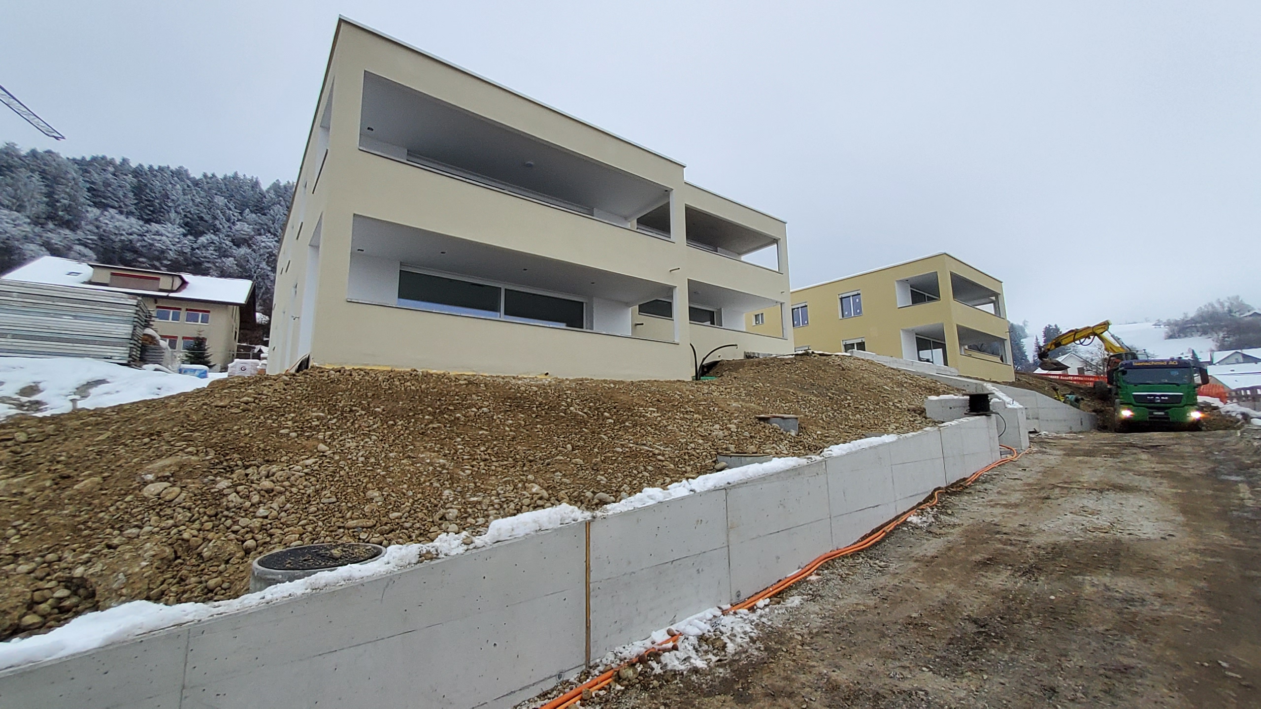 Das Neubauprojekt beinhaltet 9 Eigentumswohnungen mit den entsprechenden Einstellhallen Parkplätzen und Nebenräumen. Das Wohngebäude wird mit einer Kontrollierten Wohnraumlüftung sowie für den Eigenbedarf entsprechenden Photovoltaikanlage ausgerüstet.
